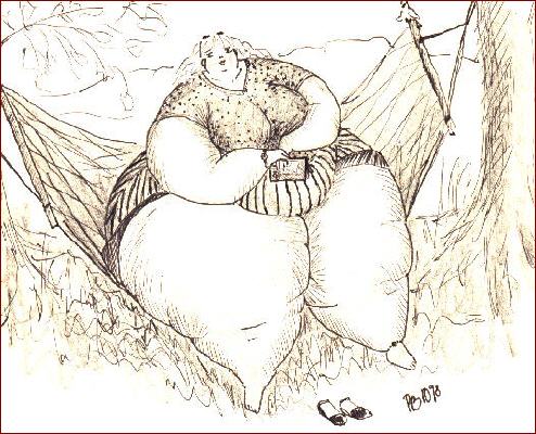 She fell asleep in the warm sun at the beach. Her full bust quietly rises and falls, her belly bulges over the tiny bikini bottom...her husband sees her like this and caresses her lovingly with his eyes...